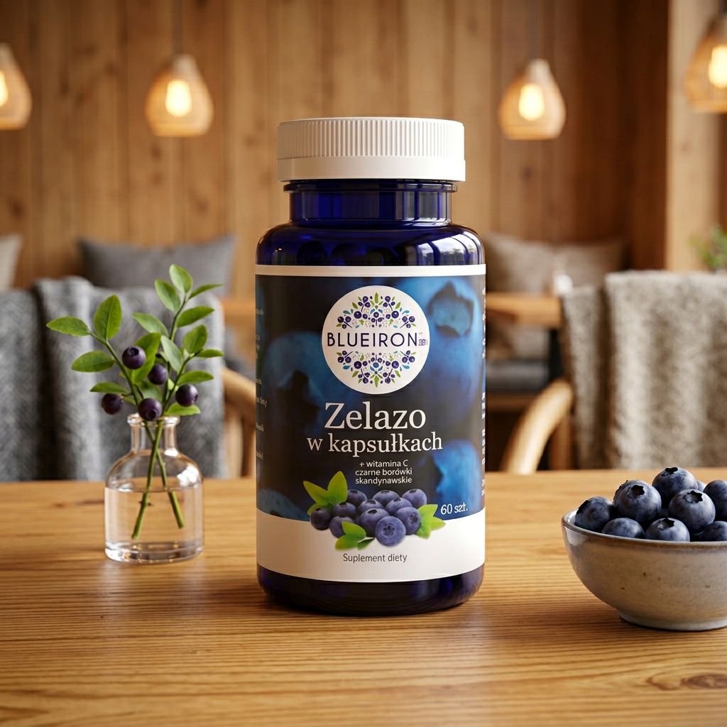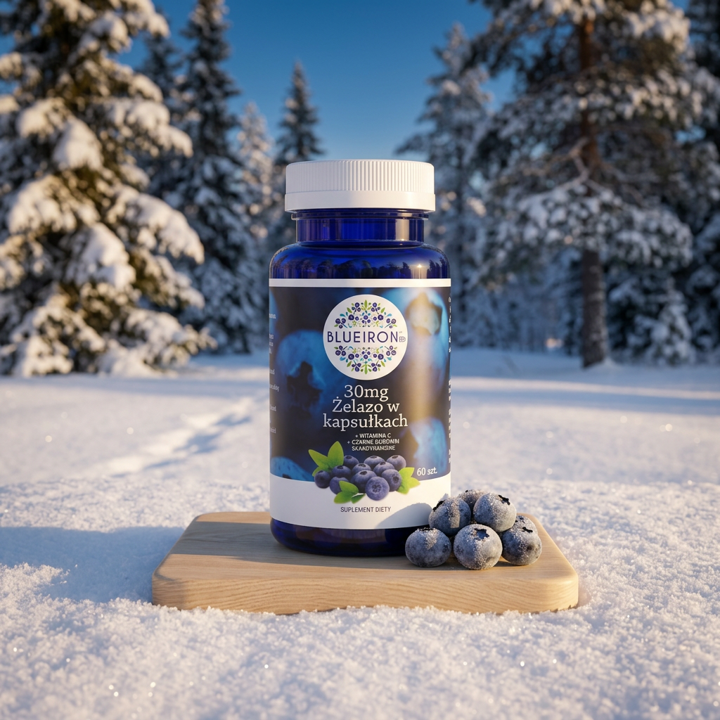 BlueIron to fiński suplement żelaza z nordycką borówką, stworzony z myślą o dobrej przyswajalności i wygodzie codziennego stosowania.
